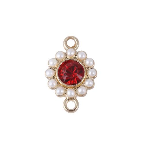 Zinklegierung Königlicher Stil Verbinder Rund Vergoldet Weiß Imitat Perle Rot Strass