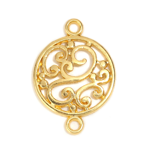 Zinklegierung Verbinder Rund Vergoldet mit geschnitzt Muster Hohl
