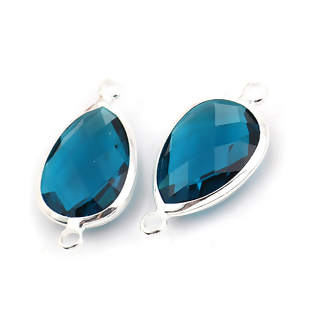 Zinklegierung & Glas Verbinder Tropfen Versilbert Monatsstein Facettiert mit Pfauenblau Strass, 26mm x 14mm