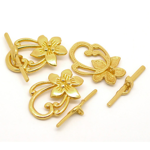 Zinklegierung Knebelverschluss Blumen Vergoldet mit Blumen Motiv 30mm x 20mm 30mm x 5mm