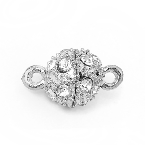 Zinklegierung Magnetverschluss Rund Silberfarbe Transparent Strass