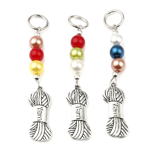 Zinklegierung & Acryl Stricken Stitch Markers Strickball, Antiksilber, 77mm x 12mm1 Stk. (Farbe nach Vorrat)