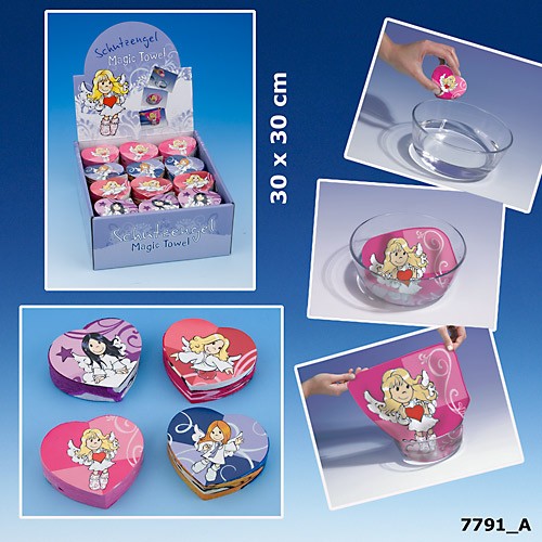 Waschlappen, gepresst, Velour in Herzform entfaltet sich im Wasser