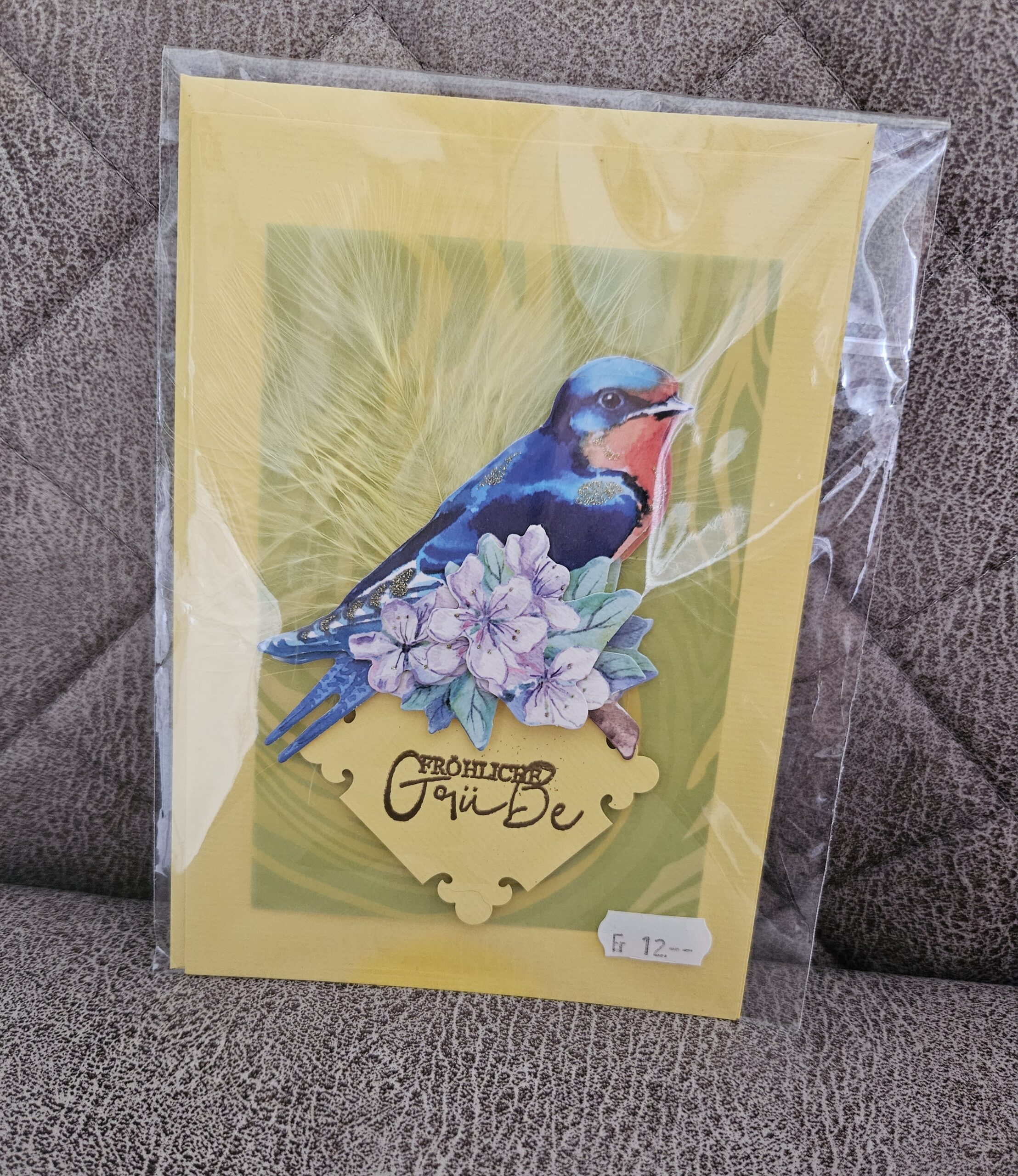 Doppelkarte 3-D mit Vogel, inkl. Couvert, 13 x 18.5 cm