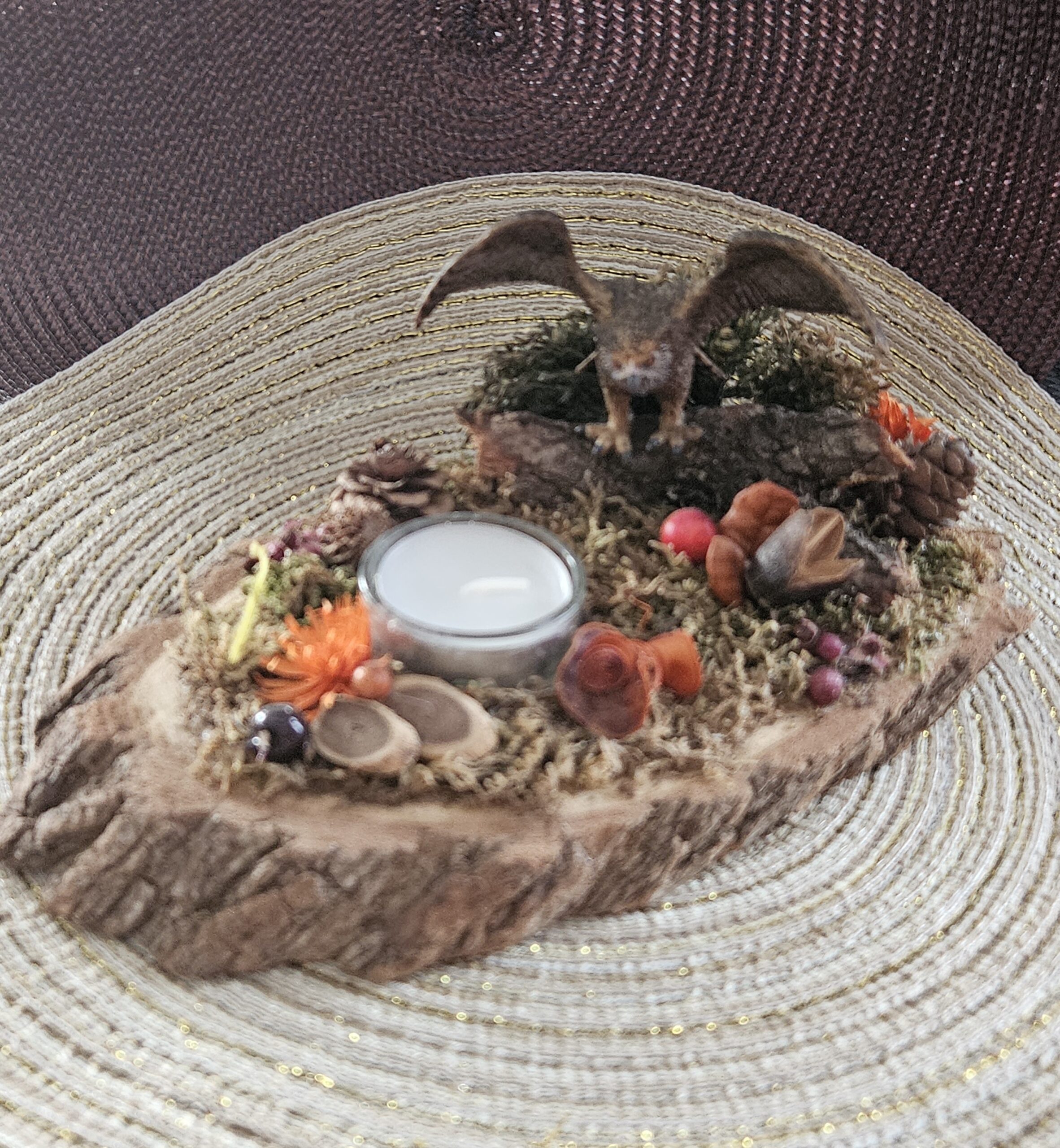 Holzscheibe ca. 25 cm mit Deco und TeelichtHandarbeit